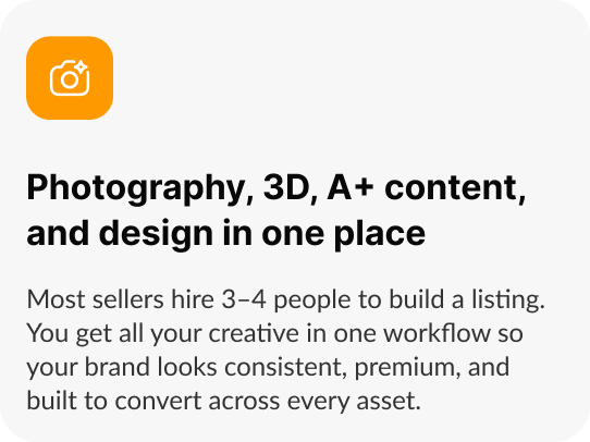 You get everything from visuals to storytelling in one place so your listing feels strong, clear, and built to convert without hiring multiple teams.