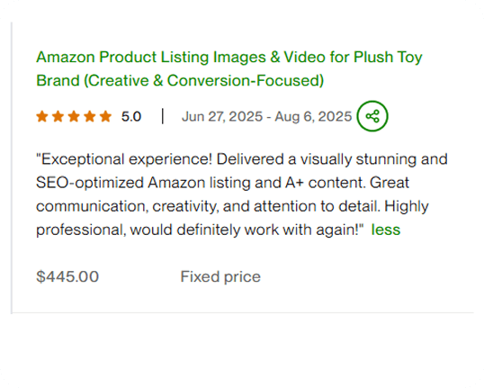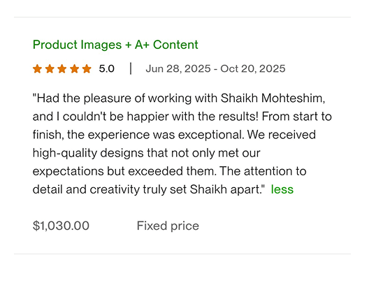 I have designed over 5,000 Amazon listing images and worked closely with hundreds of sellers to fix low-converting listings. Over the years, I’ve seen the same patterns repeat — sellers spend money on ads, drive traffic, but the visuals fail to convert. That’s where my expertise comes in.